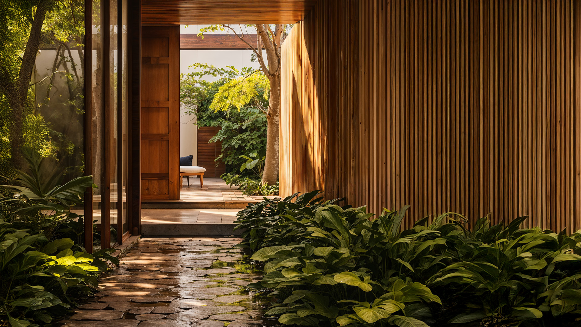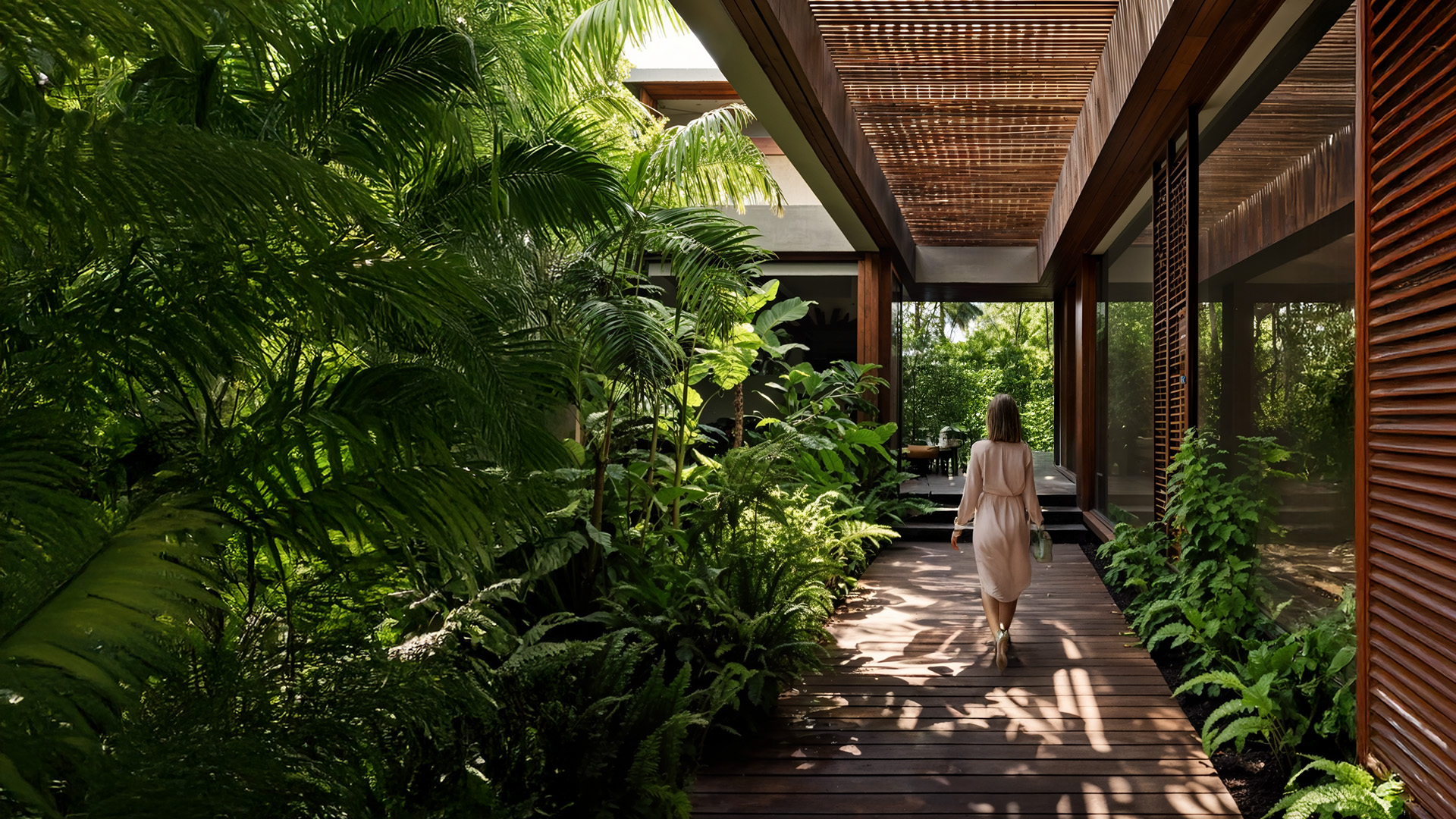 Ao pisar na Casa TH, você sente primeiro, entende depois. É o aroma da madeira natural que acolhe, o frescor suave das plantas que abraça, e a luz brincando com as sombras em uma dana delicada que muda ao longo do dia. Mais que arquitetura, é uma experiência diária feita para quem deseja sentir que está exatamente onde deveria estar.